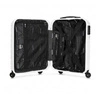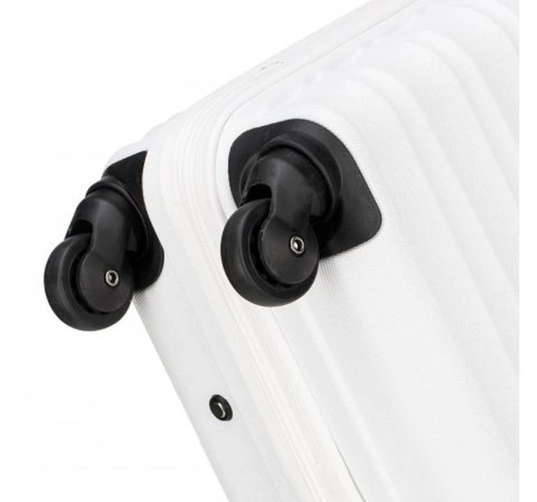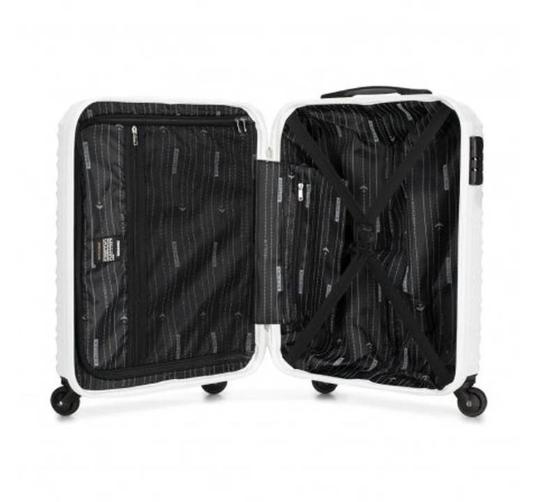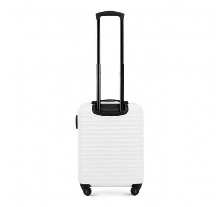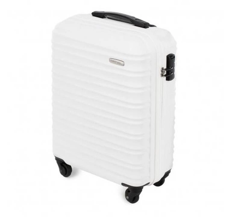 Mała walizka z kolekcji GROOVE Line. Stworzona z ABS-u, który gwarantuje niezawodną ochronę przewożonych rzeczy. Walizka wyposażona jest w cztery łożyskowane kółka, wysuwany uchwyt oraz dwie gumowe rączki ułatwiające przenoszenie bagażu. Ponadto, zabezpieczenie w postaci zamka szyfrowego uniemożliwiającego osobom niepożądanym dostęp do wnętrza.