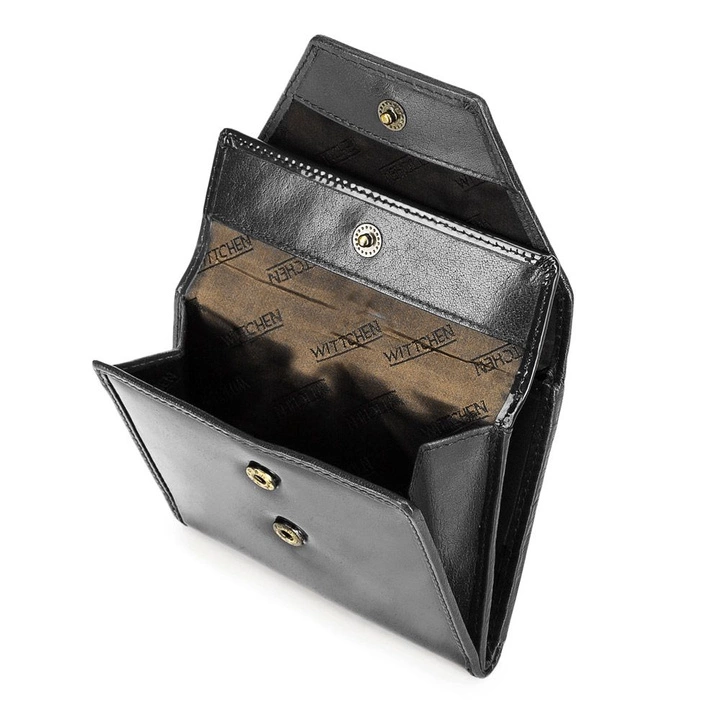 - portfel posiada zdobienie w postaci blaszki z herbem WITTCHEN w kolorze starego złota