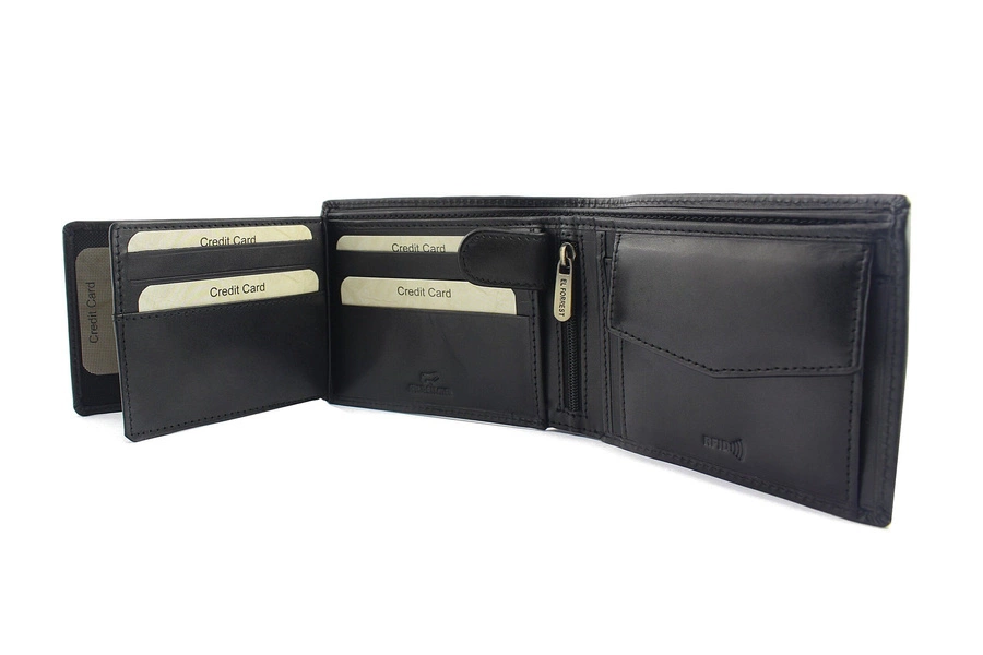 Produkty oznaczone symbolem RFID zaprojektowane są w ten sposób, by chronić karty kredytowe i debetowe z wbudowanym chipem RFID (Radio Frequency Identyfication) przed nieuprawnionym skanowaniem karty, gdy ta znajduje się wewnątrz zamkniętego portfela. Producent i dystrybutor tego produktu nie ponoszą odpowiedzialności za skutki nieautoryzowanego skanowania przechowywanych w nim kart.