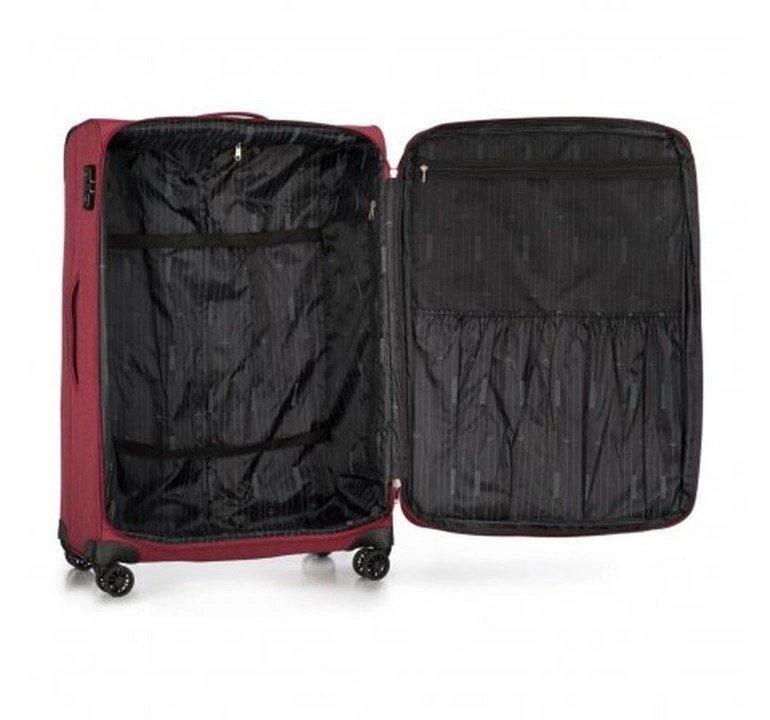 Walizka w dużej wersji wykonana z niezwykle wytrzymałego poliestru, zapewni doskonałą ochronę przewożonej w niej zawartości. Przedni panel walizki wyposażony jest w cztery kieszenie różnej wielkości, które umożliwiają spakowanie większej ilości bagażu. Z tyłu znajduje się identyfikator umożliwiający oznakowanie walizki danymi osobowymi.